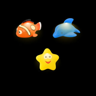 - Light-up bath toys – glowing whales, starfish, and fish that float and flash in the water